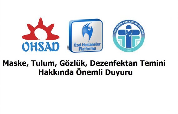 Bildiğiniz gibi Covid-19 pandemisi kapsamında özel sağlık kuruluşlarının ihtiyacı olan koruyucu ekipmana ilişkin talepler Özel Hastaneler ve Sağlık Kuruluşları Derneği (OHSAD), Özel Hastaneler Platformu Derneği (ÖHP) ve Tüm Sağlık Kuruluşları Derneği (TÜMSAD) aracılığı ile Sağlık Bakanlığı kuruluşu USHAŞ’a iletilmekteydi.